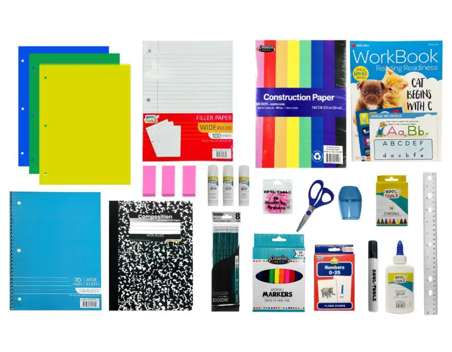 Each kit comes packed in a clear, sealable bag for easy distribution and visibility. Supplies cover everything from pencils and markers to notebooks, construction paper, and flashcards. This kit offers a convenient, cost-effective solution for back-to-school programs and classroom support.